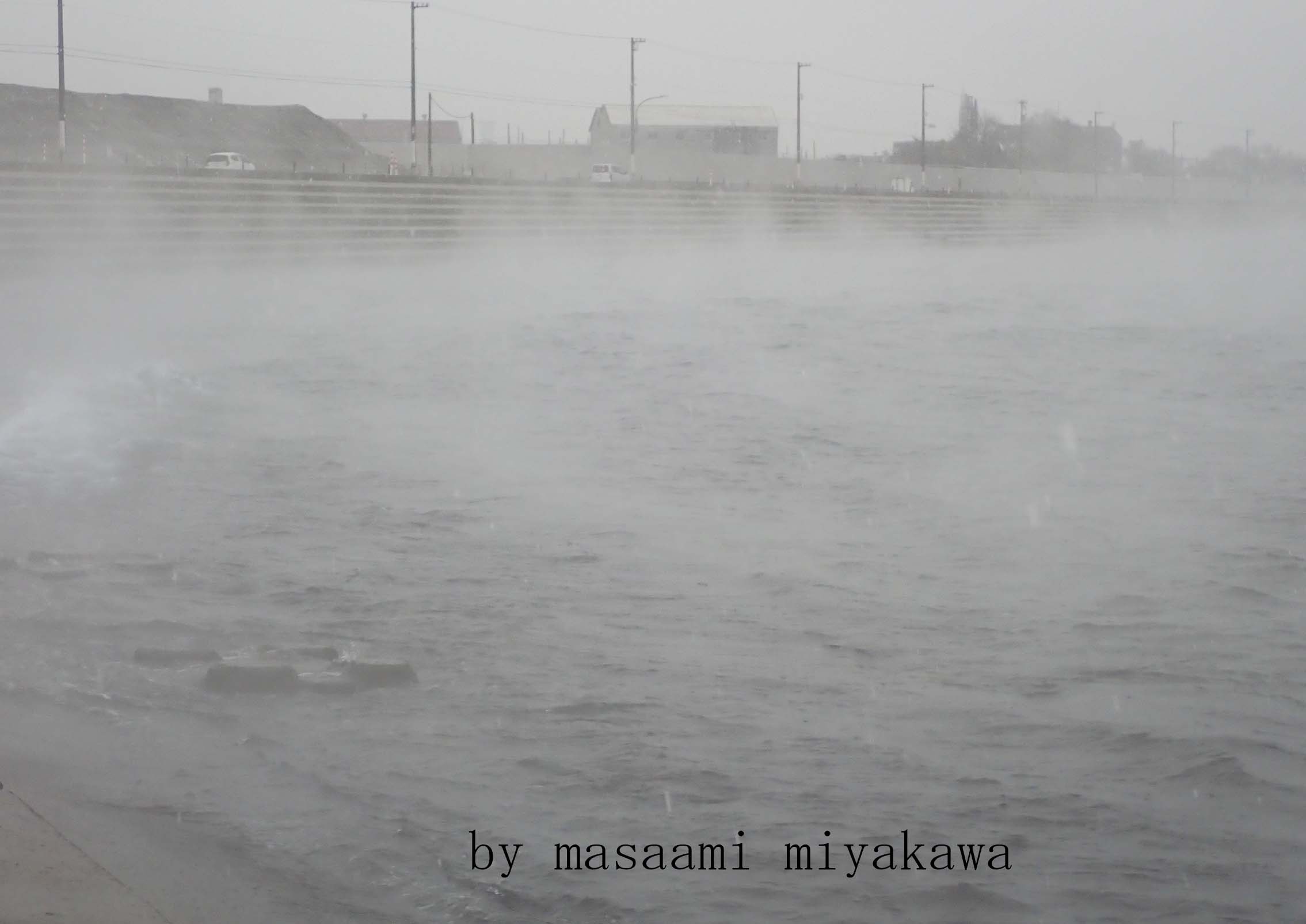 | 気嵐(ケアラシ) 北鬼江海岸より 本新海岸道路に向け 今季初 気嵐が発生 行き交う車も視界不良 令和7年12月5日(金) 撮影:宮川政昭 |